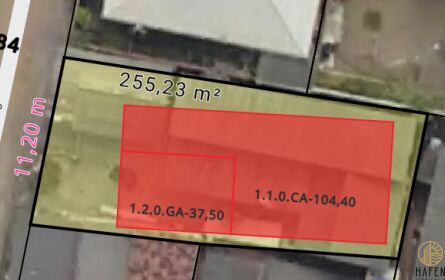 O terreno conta com 11,5 metros de frente por 22 metros de fundos, oferecendo 253 m² de área total.